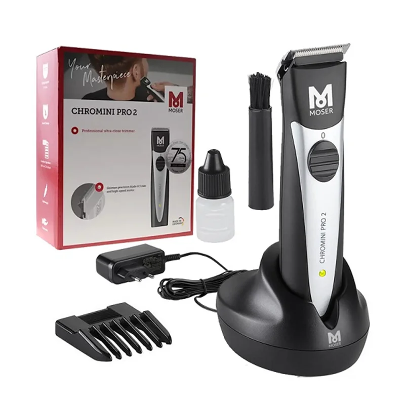 ماشین اصلاح موی صورت موزر مدل CHROMINI PRO2 1591-0064 با دقت پیرایش 0.3 میلی مترمیباشد. ماشین اصلاح موزر moser مدل chromini pro2 1591-0064 دارای باتری لیتیومی با توان 600 میلی آمپر می باشد.ماشین اصلاح موی صورت موزر مدل CHROMINI PRO2 1591-0064 با قابلیت استفاده با سیم و بی سیم میباشد و مدت زمان شارژ کامل باتری 120 دقیقه و مدت زمان کارکرد با باتری فول شارژ 85 دقیقه میباشد.ماشین اصلاح موزر moser chromini pro 2 1591-0064 ساخت کشور آلمان میباشد.