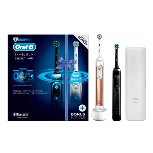 مسواک برقی اورال بی مدل GENIUS 8900 شامل 2 مسواک و یک کیف میباشد. این مسواک ها دارای تشخیص موقعیت هستند و از طریق بلوتوث با اپلیکیشن هم هماهنگ می شن تا بهترین روش مسواک زدن رو به شما پیشنهاد بدن.